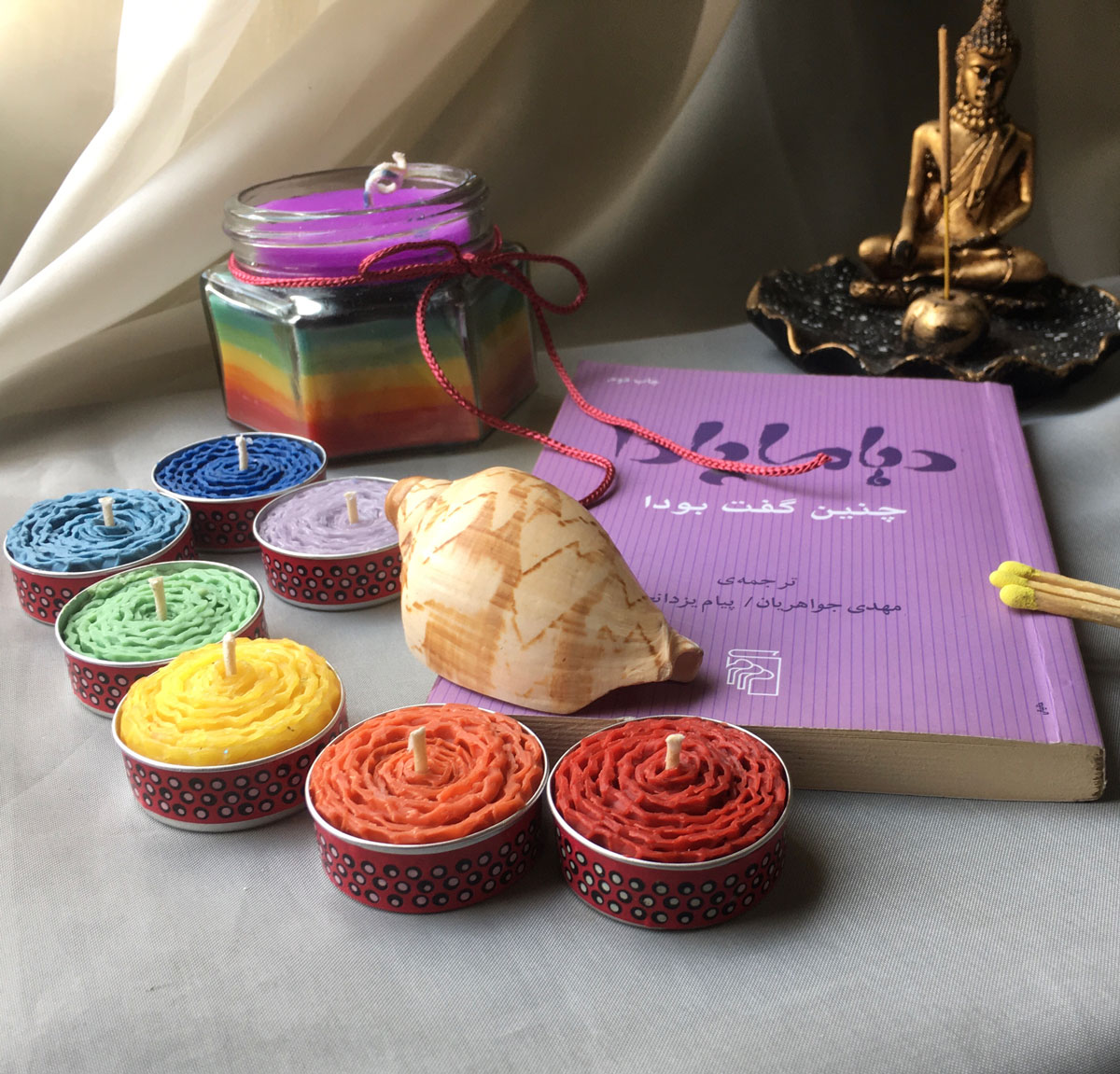 این شمع‌های سکه‌ای از موم عسل طبیعی و به قطر ۶ سانتی‌متر ساخته شده‌اند و هر کدام با رنگی مخصوص چاکراهای اصلی طراحی شده‌اند. شکل گرد و فشرده‌شان باعث می‌شود هم ظاهرشان خاص باشد، هم روی هر سطحی به‌راحتی قرار بگیرند. موم طبیعی آرام می‌سوزد، دود اضافه تولید نمی‌کند و فضای مدیتیشن یا اتاق خواب را گرم و آرام می‌کند.